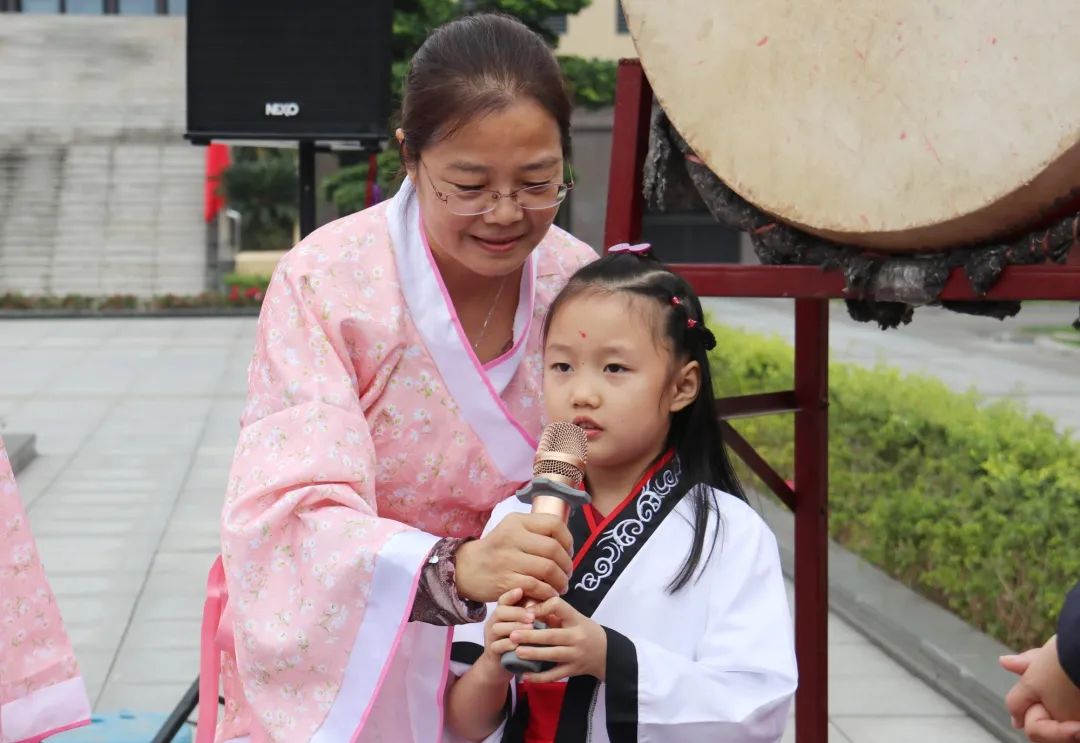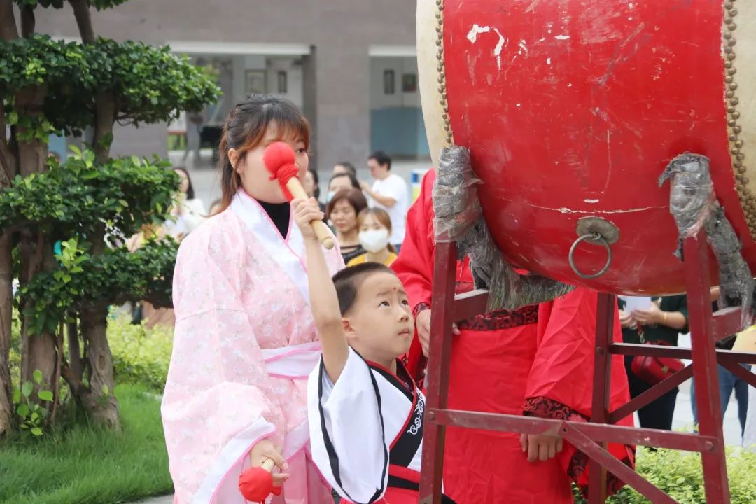 在鏗鏘有力的鼓聲中,“開筆禮”活動拉開序幕。看,一年級的小寶們在老師的帶領下,跨過狀元橋,通過欞星門,邁上破蒙受教第一步,預示今后“平步青云”---步步高,躍龍門——皆成名。