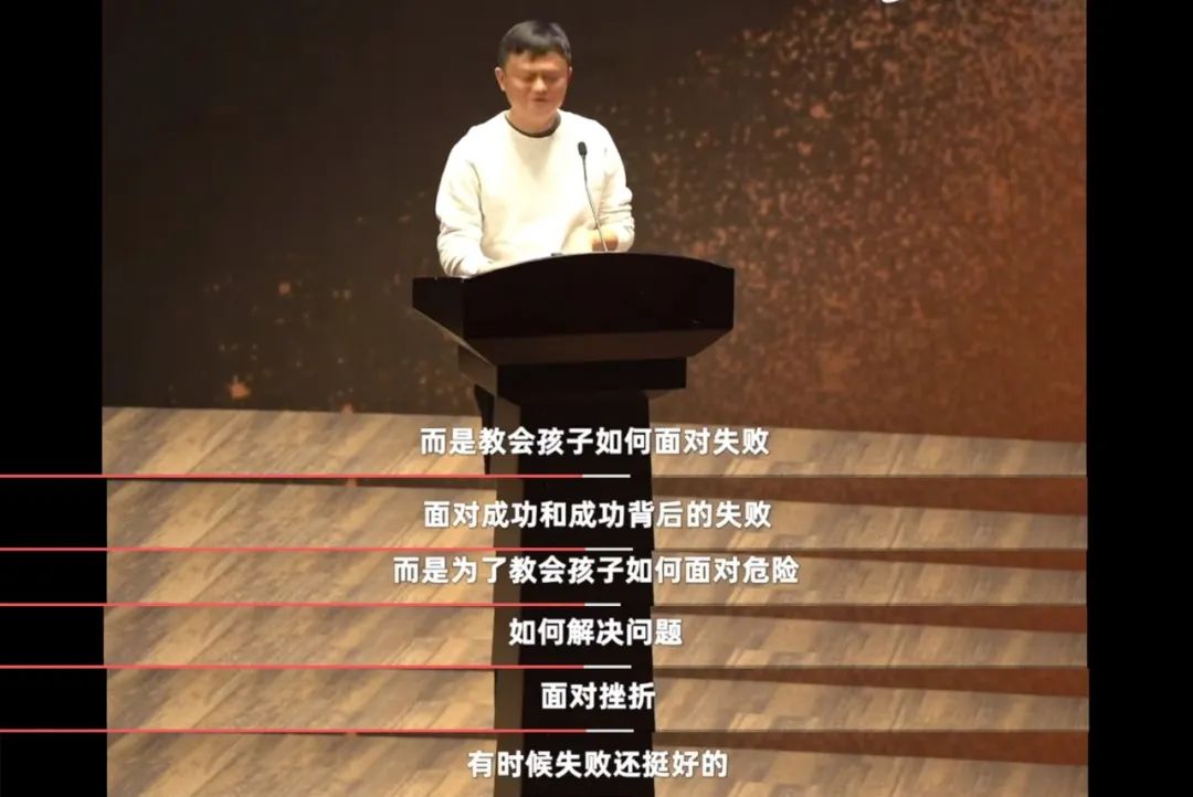 馬云在今年10月15日云谷學校的演講中也提到:“挫折不會等孩子長大才來,培養抗壓力當然越早越好。”
