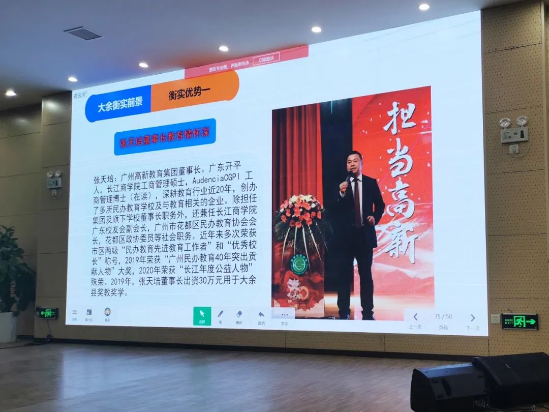 聽完曾局長一個多小時的講座,張天培董事長有感而發:教育是要有情懷,要看遠、想深、做細的,同時要感謝大余教育這方熱土,感謝大余縣委縣政府大教育的格局,并表示一定不辜負大余人民的厚望,大余衡實全體員工將在新的一年繼續交出一份滿意的答卷!